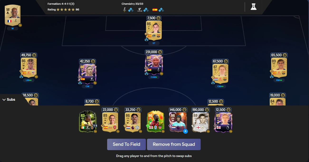 احصل على حساب FC26 نادر ومجهز بالكامل حساب Steam أصلي (مع الإيميل)، Ultimate Edition (قيمة اللعبة $100) مع مزايا Ultimate. فريق بصافي تقييم 86 وكيمستري قوي 33/33 وقيمة عملات داخل الحساب 113,662 FC. يحتوي على باقات وبطاقات قيمة وعمق احتياطي ممتاز.
